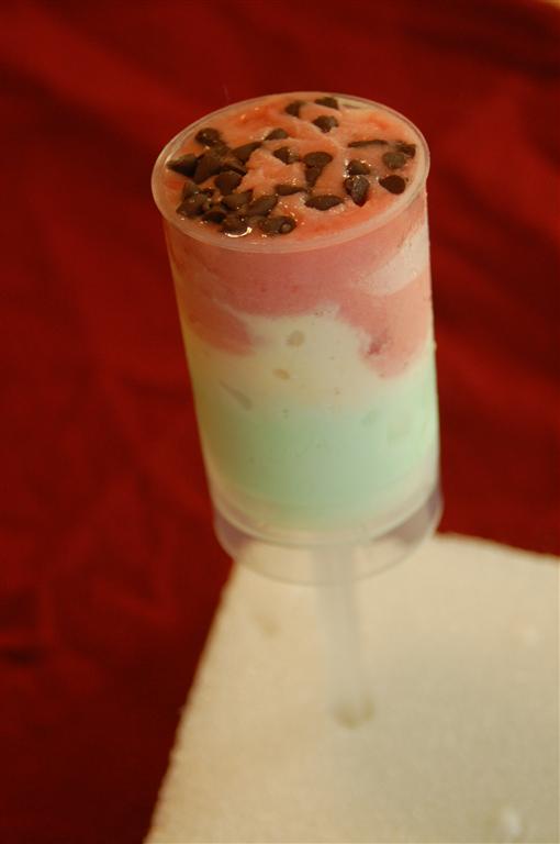 I will be making more, I just wanted to see how it turned out. I need to practice more, lots more. I need to work on pushing the stuff down and I think I'd like to find a different Strawberry Sorbet, one that is a little darker to resemble more of a watermelon. I have to say though, this was delicious!
